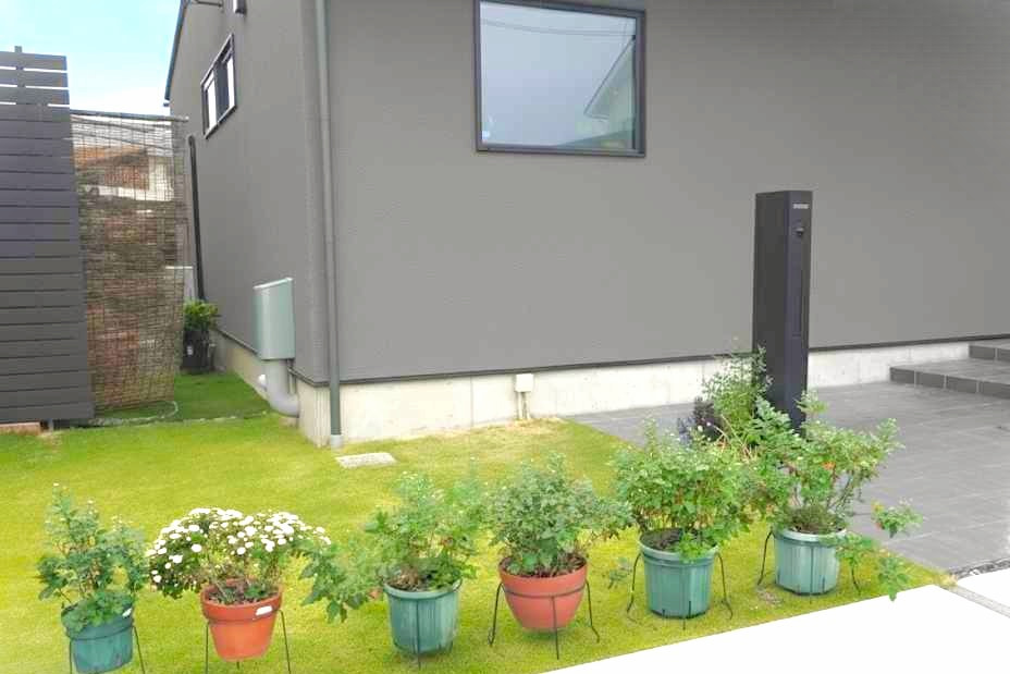 モノトーンを基調としたシックな佇まいに、緑の植栽がそっとやさしさを与える家まわり。ご自宅の色味や表情に合わせ、全体の統一感と上質さを意識したデザインに仕上げました。